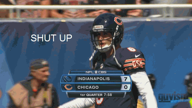 I'm a Cutler fan because he's represents everything the average dumb fan hates. And because he's the best quarterback my favorite team has ever had. So go ahead and qualify his play with incessant and uninformed "Yeah, buts," and feel free to magnify his mistakes more than those of any other NFL quarterback. I don't give a crap.